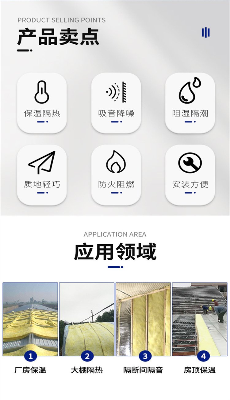 A级彩色玻璃棉毡大棚彩钢房隔热棉低吸湿性环保产品