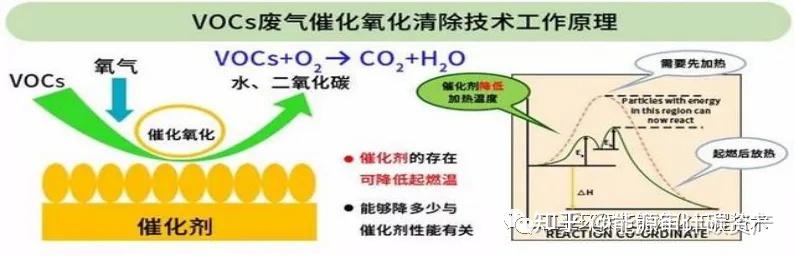 催化燃烧反应原理是有机废气在较低温度下在催化剂的作用下被完全氧化和分解,达到净化气体目的。催化燃烧是典型的气固相催化反应,其原理是活性氧参与深度氧化作用。在催化燃烧过程中,催化剂的作用是降低反应的活化能,同时使反应物分子富集在催化剂表面上以提高反应速率。借助于催化剂,有机废气可以在较低的起燃温度下无焰燃烧并且在释放大量热量,同时氧化分解成CO2和H2O。CO在150℃就会发生催化氧化反应,250℃条件下脱除效率可达90%。